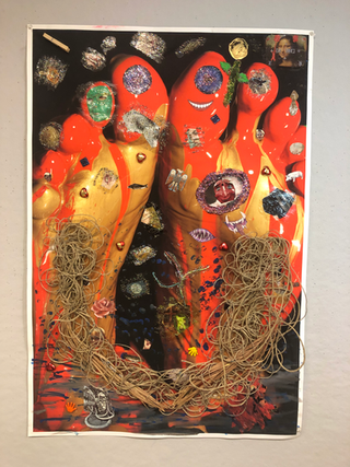 The large-scale pieces were intended to embody the vastness of existence, mirroring the complexities of the universe itself. By integrating photographs of the human body with paint and other materials, I sought to explore an otherworldly dimension within us—revealing that our existence is far more intricate than the physical and material layers we perceive. These works speak to the profound idea that we are connected to something larger and more intricate than ourselves.
